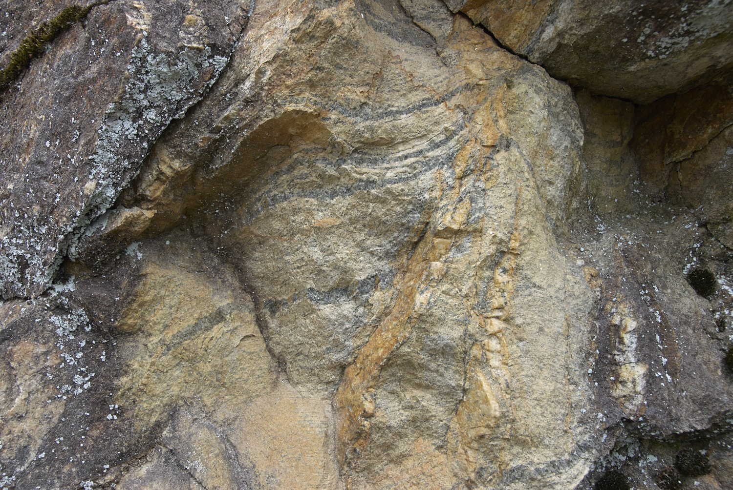 the metamorphosed pelitic rocks: a biotite zone, a cordierite-andalusite(chiastolite) zone and a sillimanite zone. A well-developed schistosity, mostly parallel to the bedding, is (as an effect of the earlier phase of low-grade regional metamorphism) preserved in the lower metamorphic biotite zone, but it is increasingly obliterated