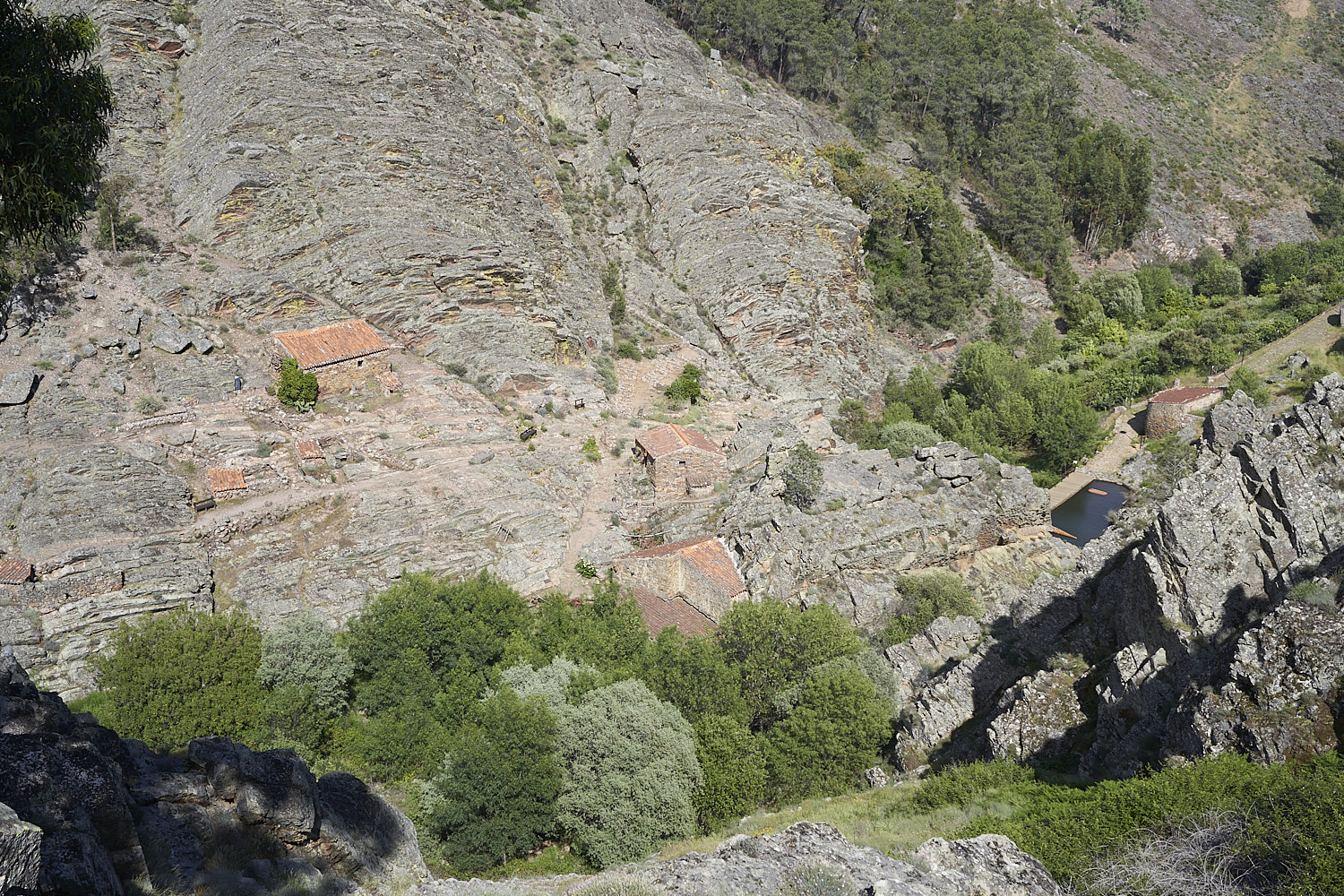 As 3 fases de deformação Varisca encontram-se bem representadas neste trecho do flanco SW do sinclinal hectaquilométrico de Penha Garcia-Cañaveral, sob a forma de belas dobras mesoscópicas e falhas de rejeitos verticais e horizontais.